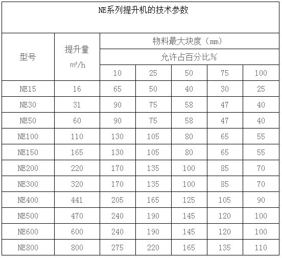 NE15、NE30、NE50、NE100、NE150、NE200、NE300、NE400型提升機的較大提升量、較大提升高度及動力配備