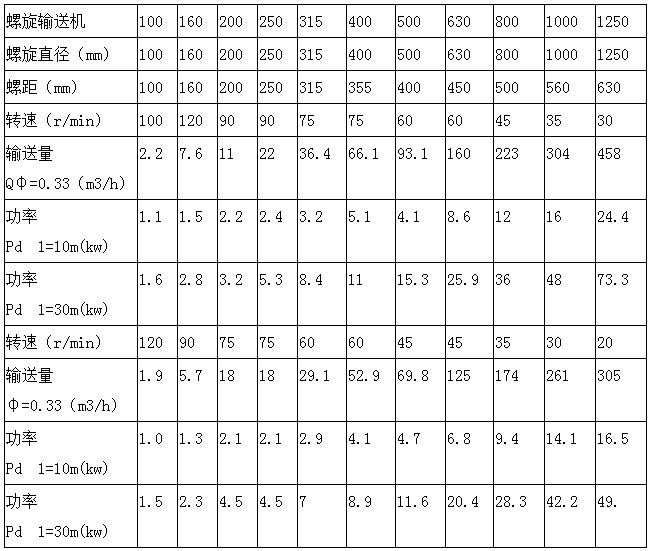 不銹鋼螺旋輸送機是螺旋輸送機的一種,下面是其技術參數(shù):